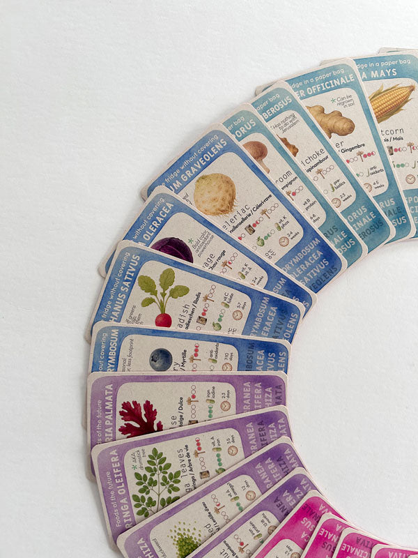 Um unser Wissen zugänglich zu machen, gestalten wir illustrierte Informationskarten für jede Sorte.