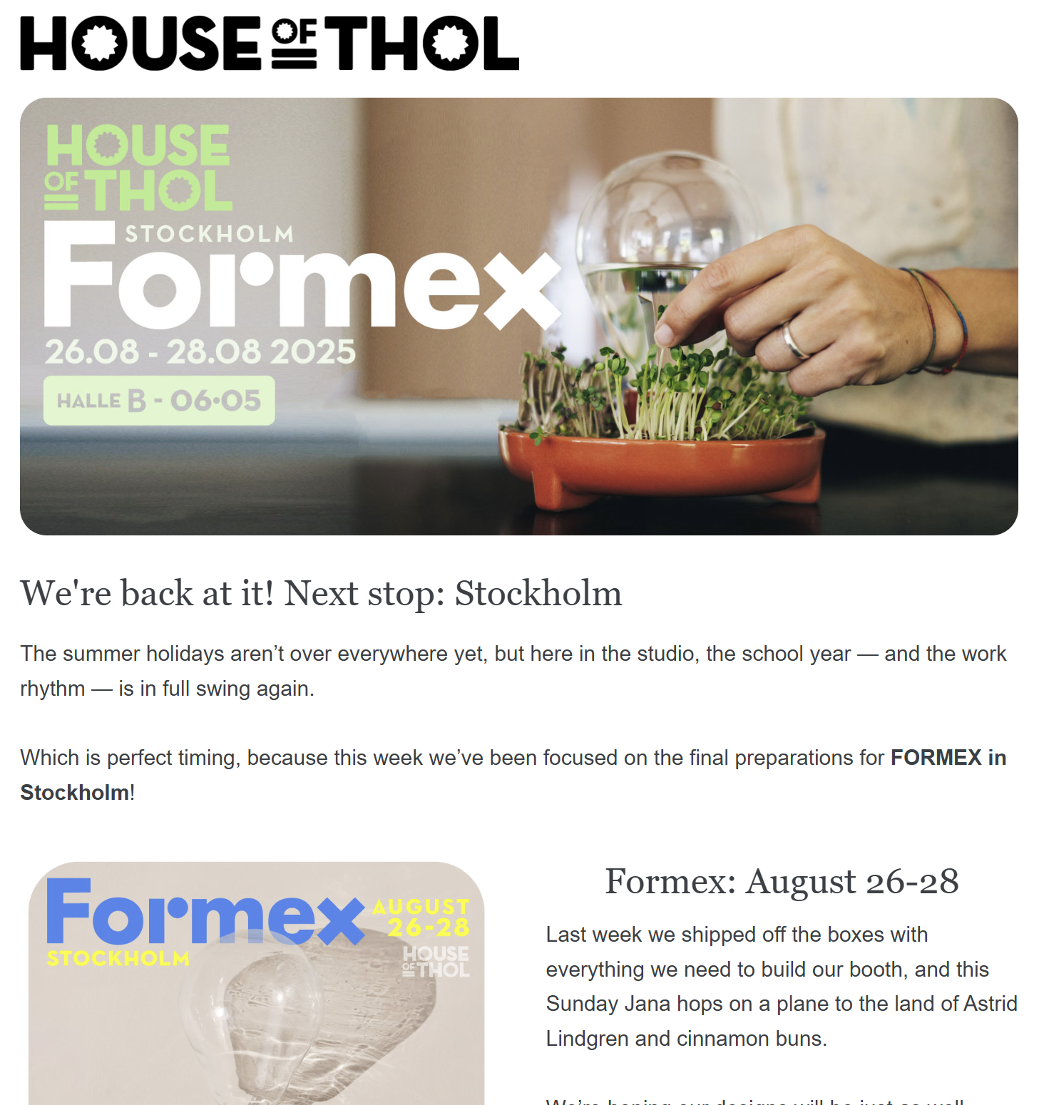 This edition is full of updates: from Formex preparations and glass news to a proud moment in Marie Claire Maison and a fresh batch of Patera Magna bowls →.