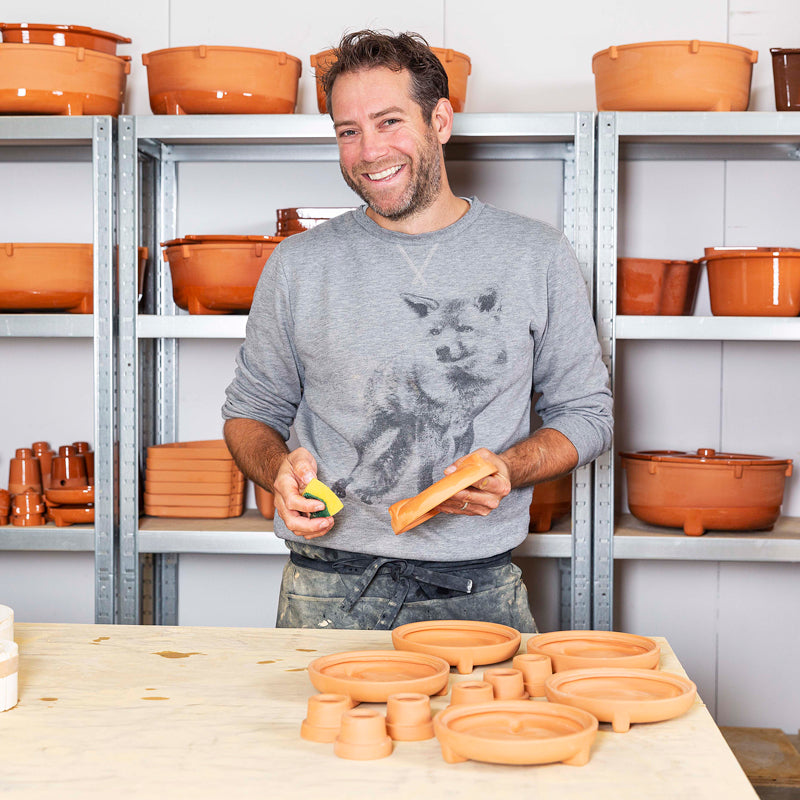 De terracotta schotels en bases van de Patella Crescenda worden geproduceerd in het zuiden van Portugal.