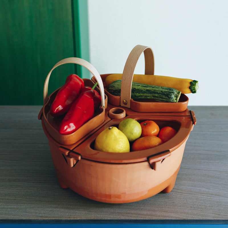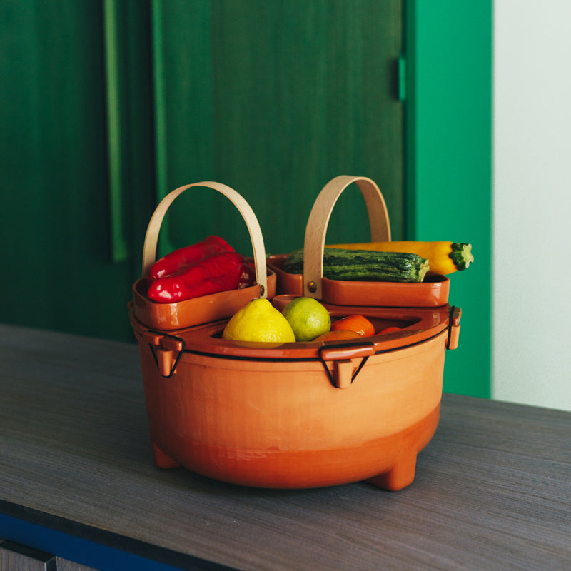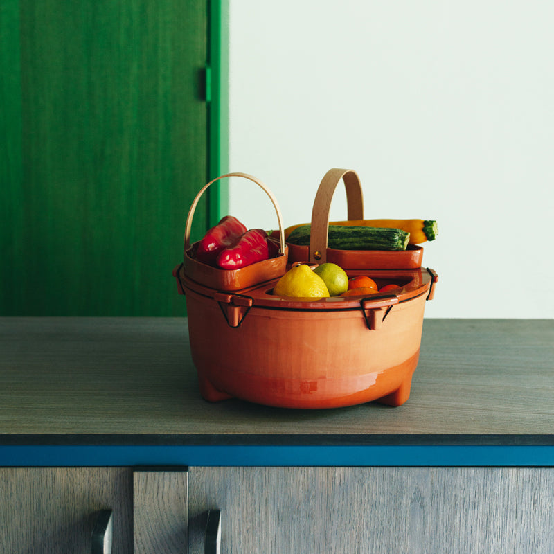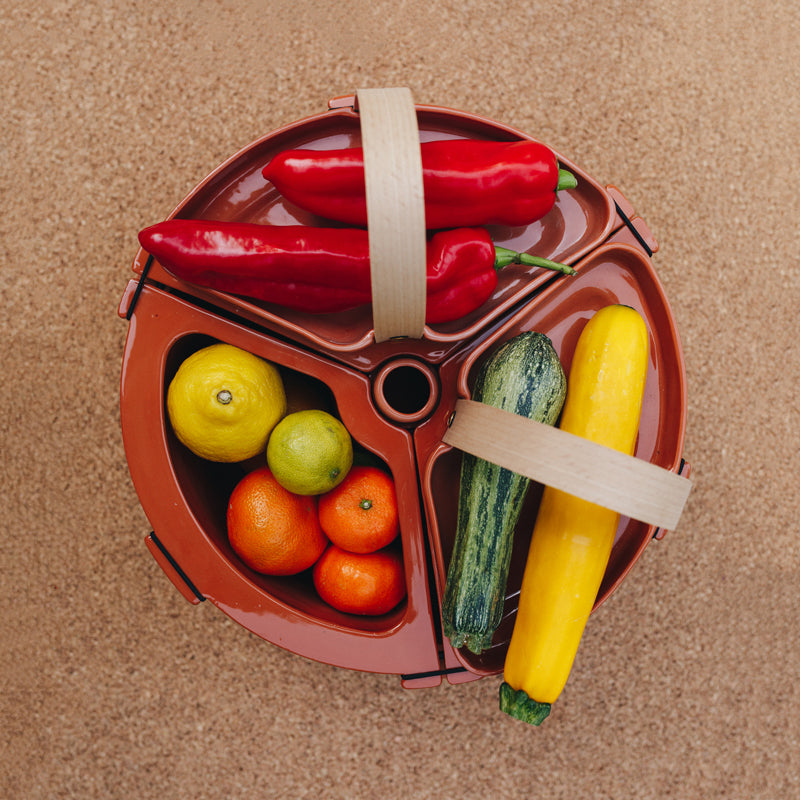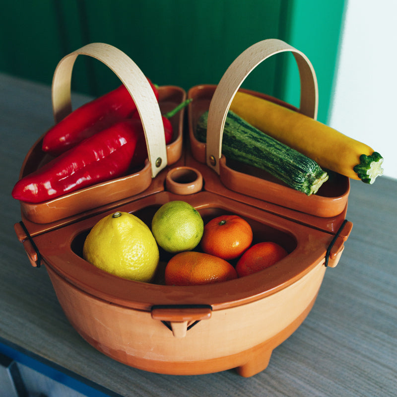 De Patera Media groente- en fruitschaal maakt deel uit van de Poma/Olera-serie: het resultaat van uitgebreid en voortdurend onderzoek naar de beste natuurlijke manier om groenten en fruit in je eigen huis te bewaren om ze vers te houden en te eten wanneer ze rijp zijn.