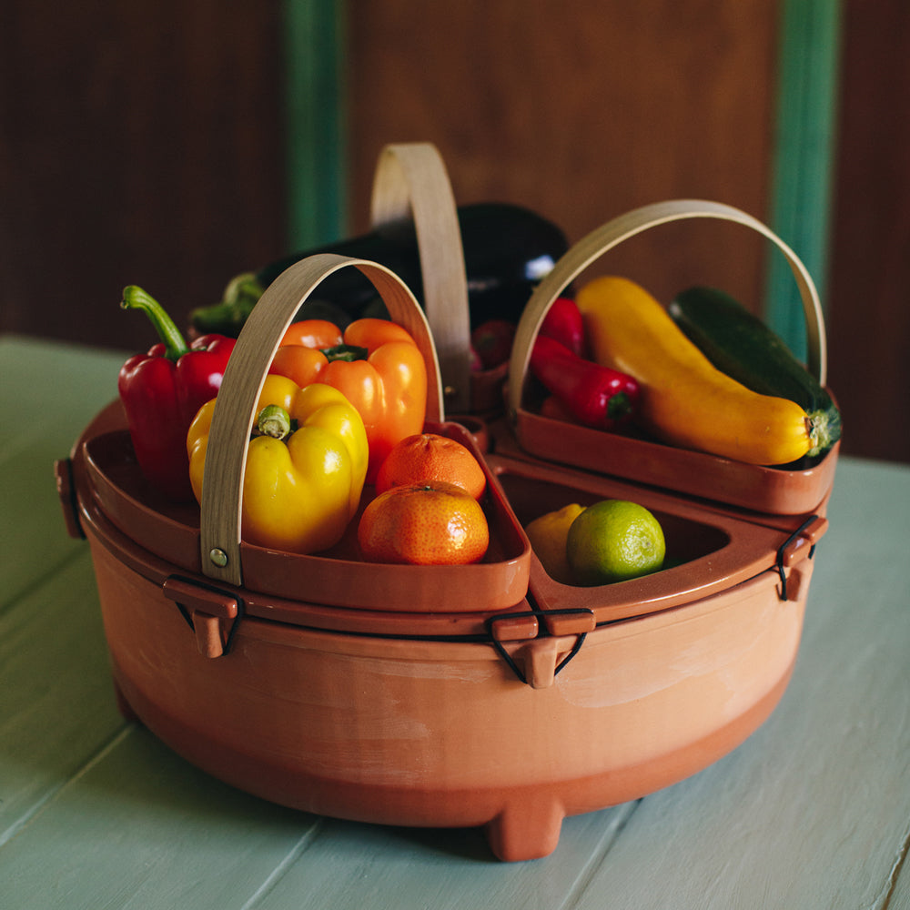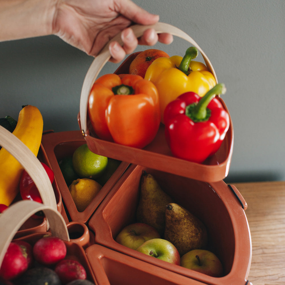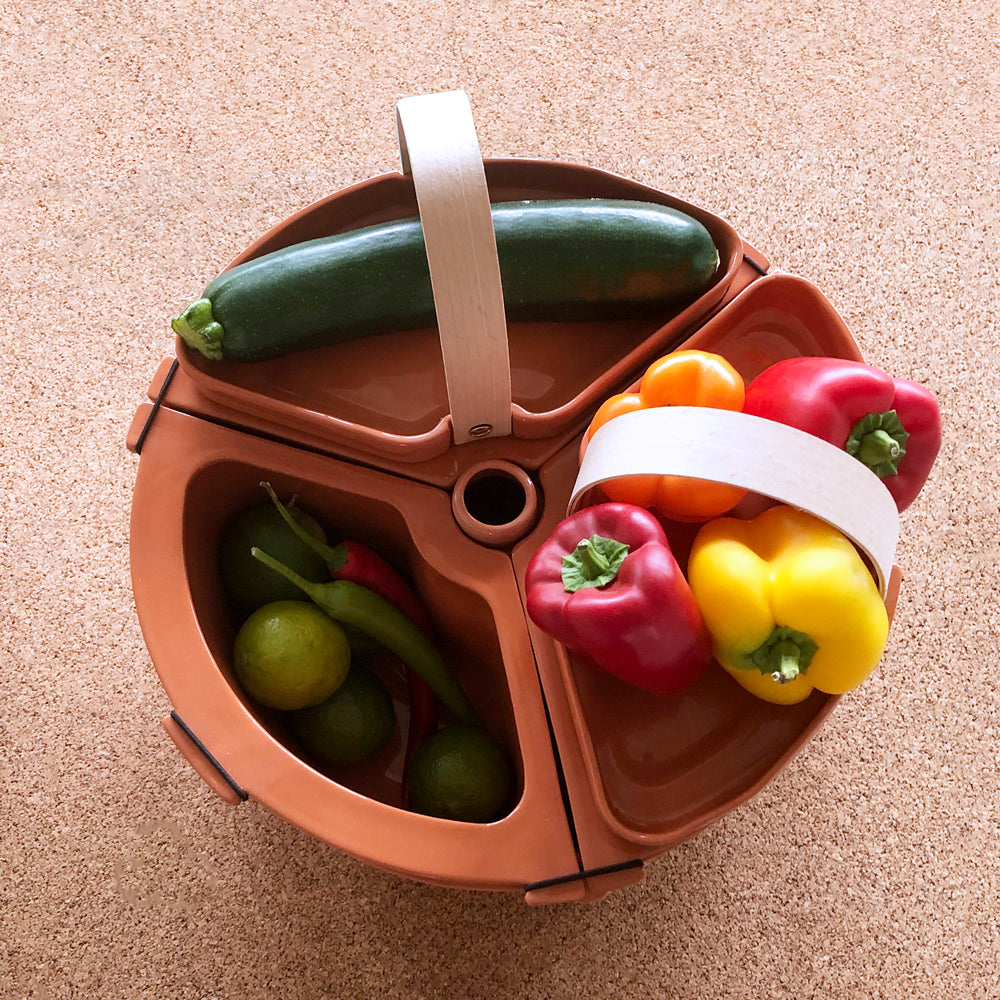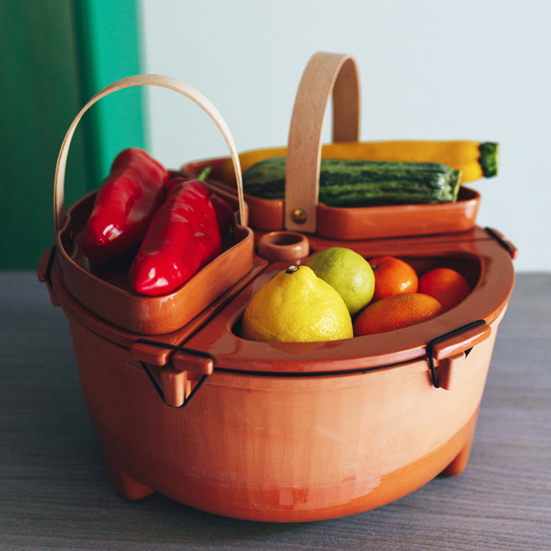 De Patera Media groente- en fruitschaal maakt deel uit van de Poma/Olera-serie: het resultaat van uitgebreid en voortdurend onderzoek naar de beste natuurlijke manier om groenten en fruit in je eigen huis te bewaren om ze vers te houden en te eten wanneer ze rijp zijn.