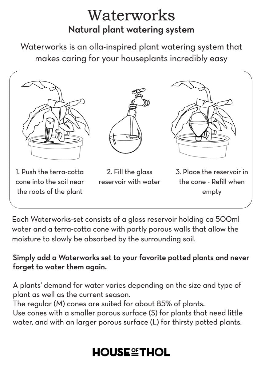 Waterworks, geïnspireerd op de traditionele olla-methode, geeft je planten precies de hoeveelheid water die ze nodig hebben, wat plantenverzorging moeiteloos maakt.
