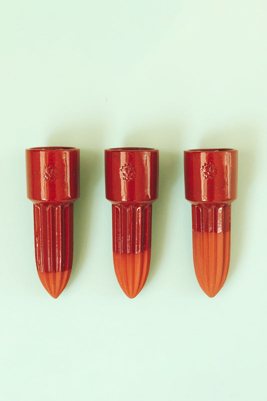As for fertilizer, there's some debate within our team. One perspective suggests it might be filtered out by the terracotta, while another believes it should still be effective. Regardless, be mindful that adding fertilizer may expedite glass staining, so our recommendation is to introduce it directly to the soil during the growing season.